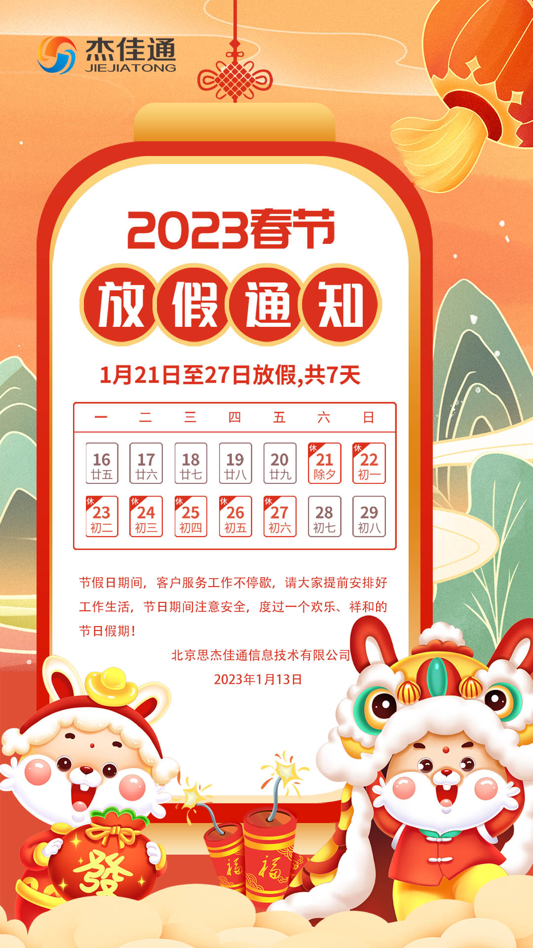 - 2023年春節放假通知!