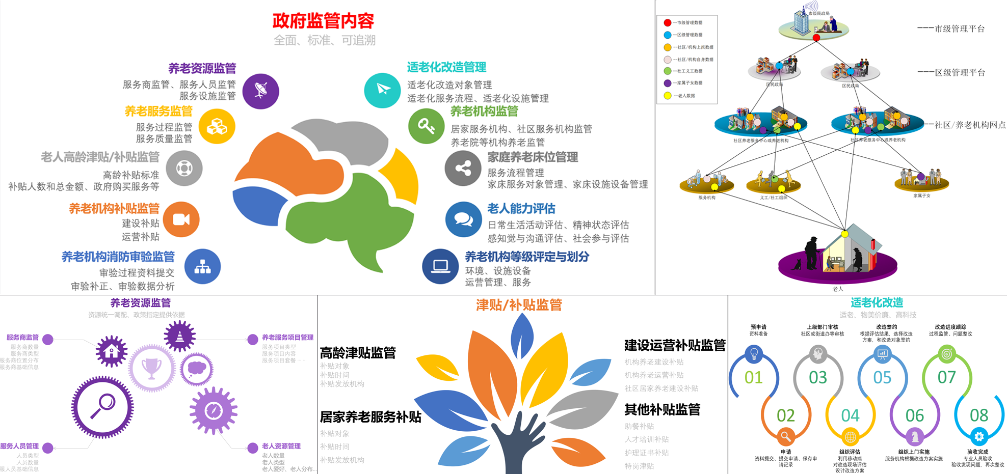 解決養(yǎng)老服務(wù)的監(jiān)管難題,在充分調(diào)研參考全國(guó)各地政府監(jiān)管需求以及先進(jìn)經(jīng)驗(yàn)的基礎(chǔ)上,投入五百萬(wàn)元研發(fā)出適合智慧政府管理的綜合養(yǎng)老監(jiān)管平臺(tái),通過搭建智慧養(yǎng)老服務(wù)監(jiān)管平臺(tái)并實(shí)現(xiàn)常態(tài)化的運(yùn)營(yíng),實(shí)現(xiàn)了養(yǎng)老服務(wù)的實(shí)時(shí)過程監(jiān)管,通過信息化手段提高民政對(duì)養(yǎng)老機(jī)構(gòu)的監(jiān)管水平,同時(shí)實(shí)現(xiàn)部門間的信息共享和業(yè)務(wù)協(xié)同。